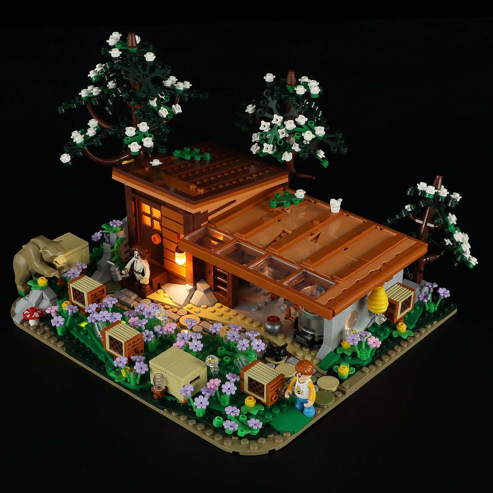 [Quick-Detach Design] The Two Black Locust Trees Can Be Quickly Detached Via Slide Grooves, Allowing For Flexible Placement And Rearrangement. The Cabin And Tool Shed Roofs Are Also Removable, Giving You Easy Access To Explore The Detailed Interiors Of This Charming Farm Or Bee Cabin.