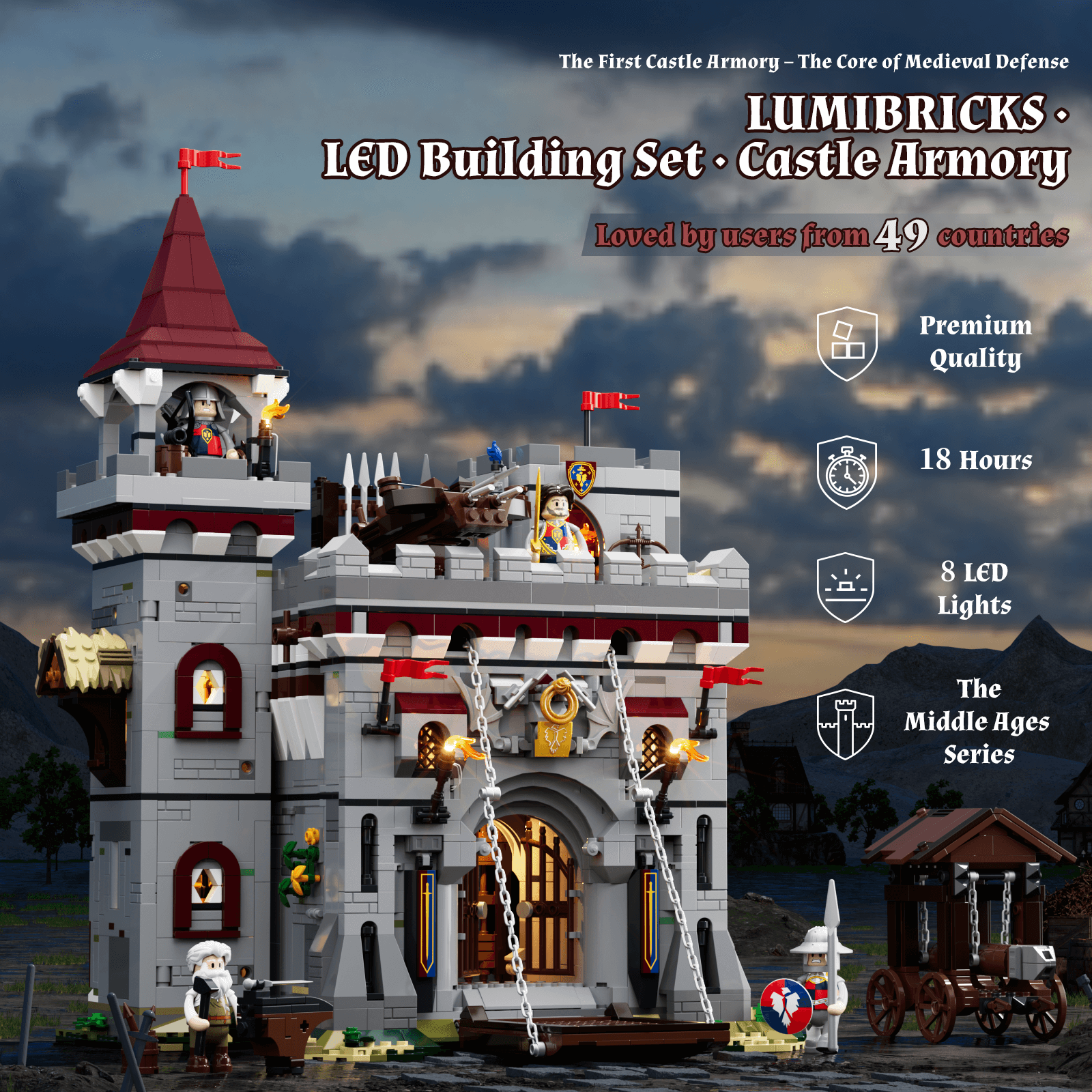 [Armory Detail Enhancements]Enhanced Offensive And Defensive Gameplay With Articulated Siege Engines And Ballistae; Approximately 20 Medieval Weapons Elevate Collectibility And Playability; Entrance Double-Axe Emblem Accentuates The Armory Theme.