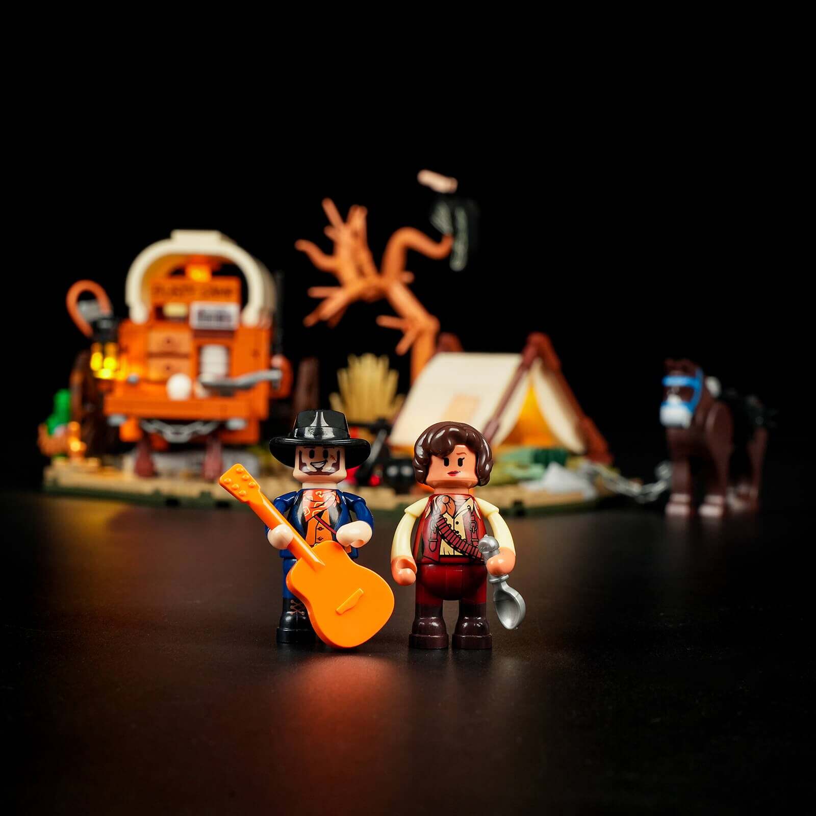 [Restore The 20Th Century Western Cowboy Camp]Cowboy Camp Is A Common Scene In The West, The Set Restores The Four Scenes Of Cooking Car, Campfire Cooking, Tent And Dead Tree.