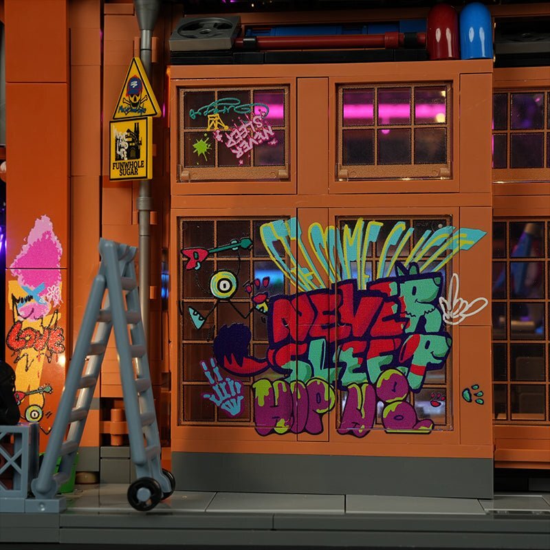 [Street Style Music Theme Building Set] A Large Livehouse Themed Building Converted From An Old Factory Building, Featuring A Wealth Of Accessories For Live Music Performances And 6 Uniquely Styled Man-Boys. Add Live Music Vigor To Your Brick City!