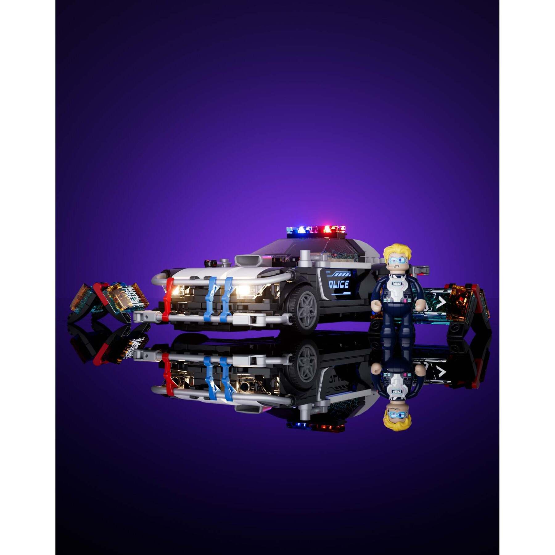 1. The Car’s Overall Image Uses Black And White As The Basic Color Tone, With Ice Blue Light, Creating A Serious Yet Dashing Image Of The Future Police Car.