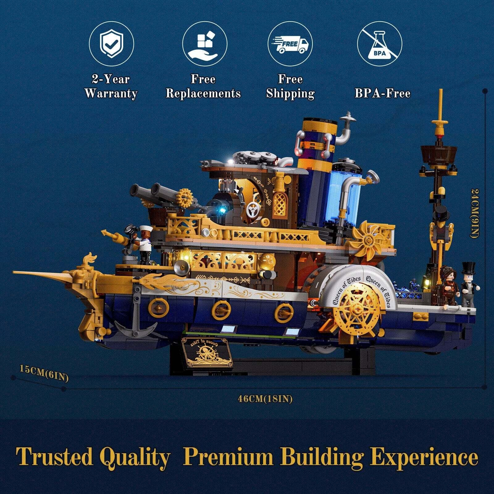 [Engineered For Dynamic Play]This Is No Static Model. As You Roll The Ship Forward On Its Hidden Wheels, The Paddle Wheels Turn Realistically And The Chimney’s Exhaust System Pumps With Life. Combine This With A Spinning Helm, A Dropping Anchor, And Opening Hatches For A Deeply Engaging, Hands-On Steampunk Experience.