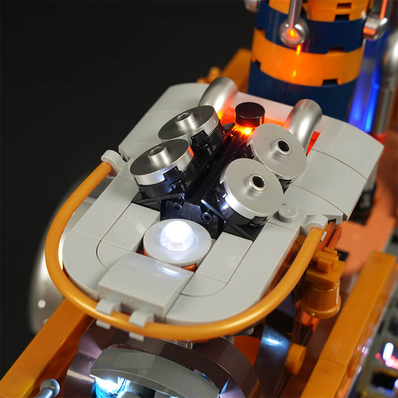 [Layer-By-Layer Quick-Release Design]The Upper Cockpit And Energy Tank Can Be Lifted Directly To Inspect The Ship’s Structure. Flip Down The Bottom Battery Compartment To Uncover The Treasure Map Easter Egg On The Battery Box.